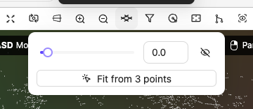 Fit from 3 points: Select 3 points on any point cloud to automatically fit the ground plane. This is useful when the ground is not flat or is at an angle.