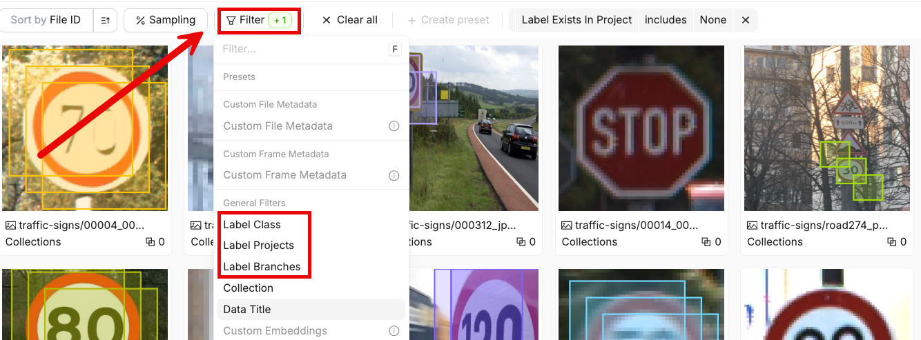 | Label Branches | Filter data units that contain labels from specific label branches. |